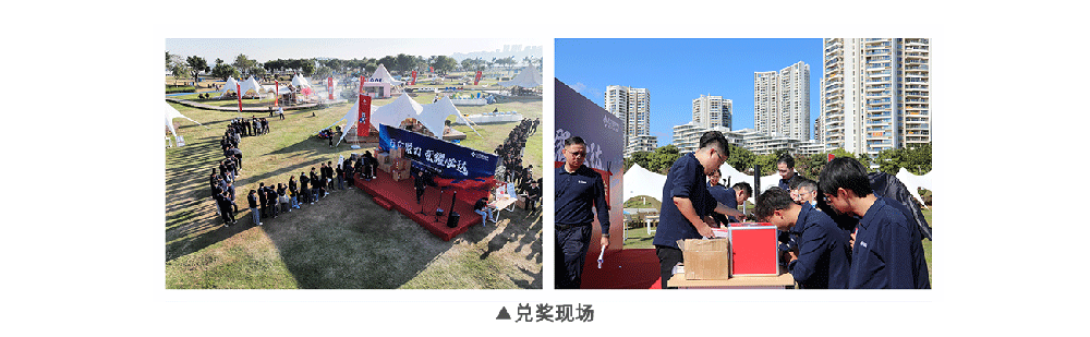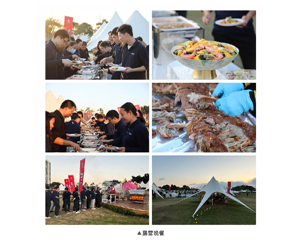 年終總結和表彰結束后,年會活動正式開始!今年一改傳統的慶典節目表演和晚宴形式,來到山海為景、綠樹成蔭的金銀灣營地開展精彩紛呈的趣味游園活動和露營自助晚餐。