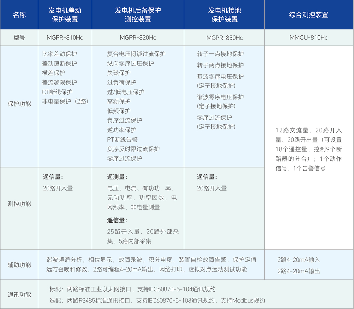 MGPR-800Hc系列發(fā)電機成套保護裝置適用于中小容量(100MW 及以下)發(fā)電機成套保護,包括發(fā)電機差動保護裝置、發(fā)電機后備保護測控裝置、發(fā)電機接地保護裝置以及選配的綜合測控裝置。本成套保護可單獨組屏,也可以與MTPR-800Hc系列變壓器成套保護結合,組成發(fā)電機-變壓器組成套保護。